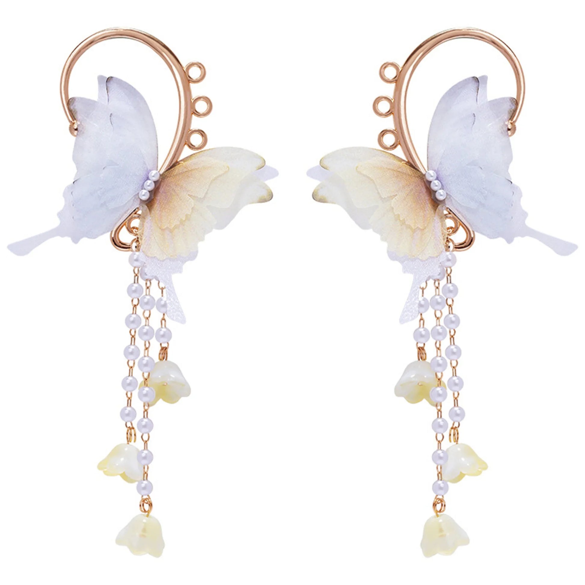 Butterfly Wing Ear Cuffs with Crystal Tassel No Piercing Earrings for Women and Girls Cosplay Jewelry Accessories