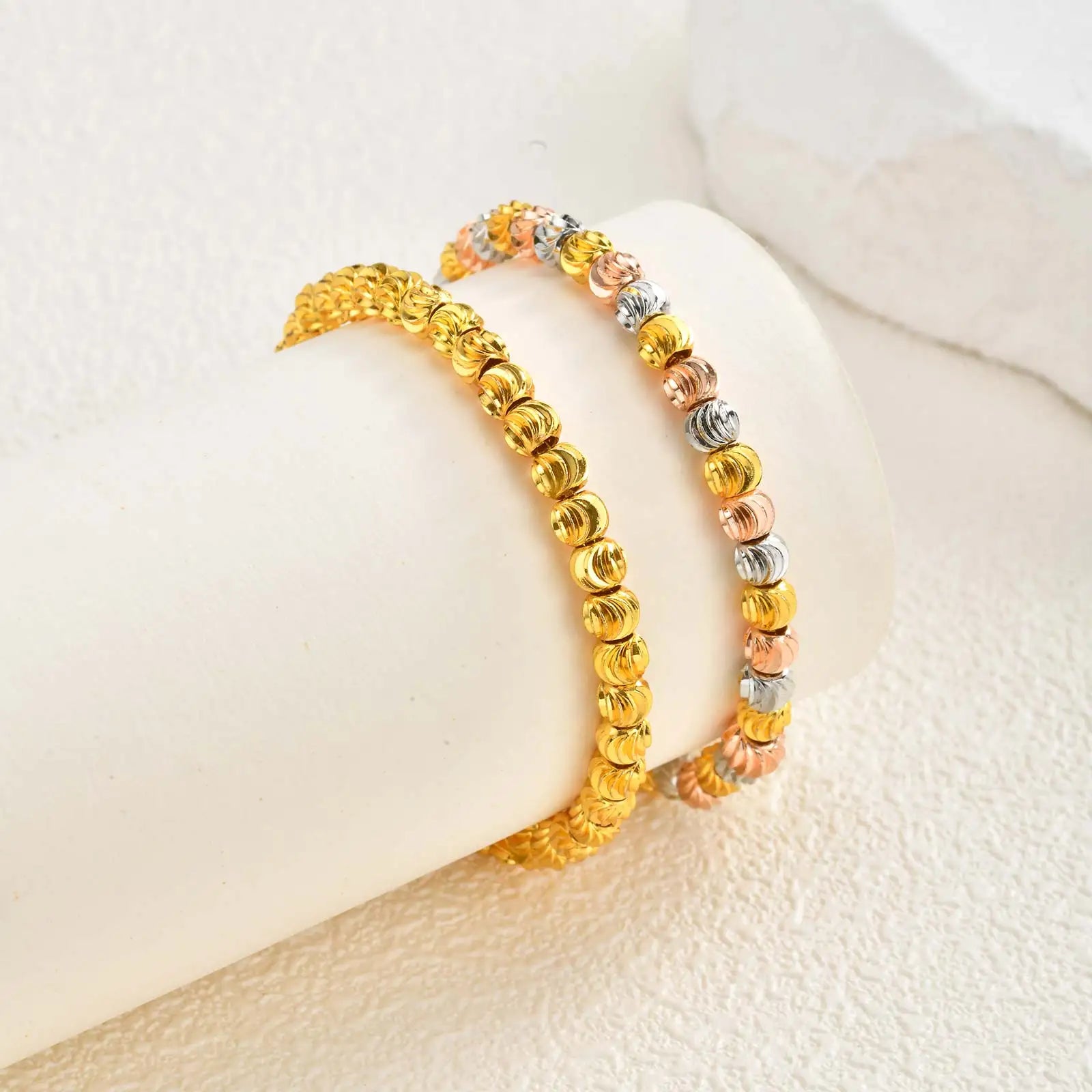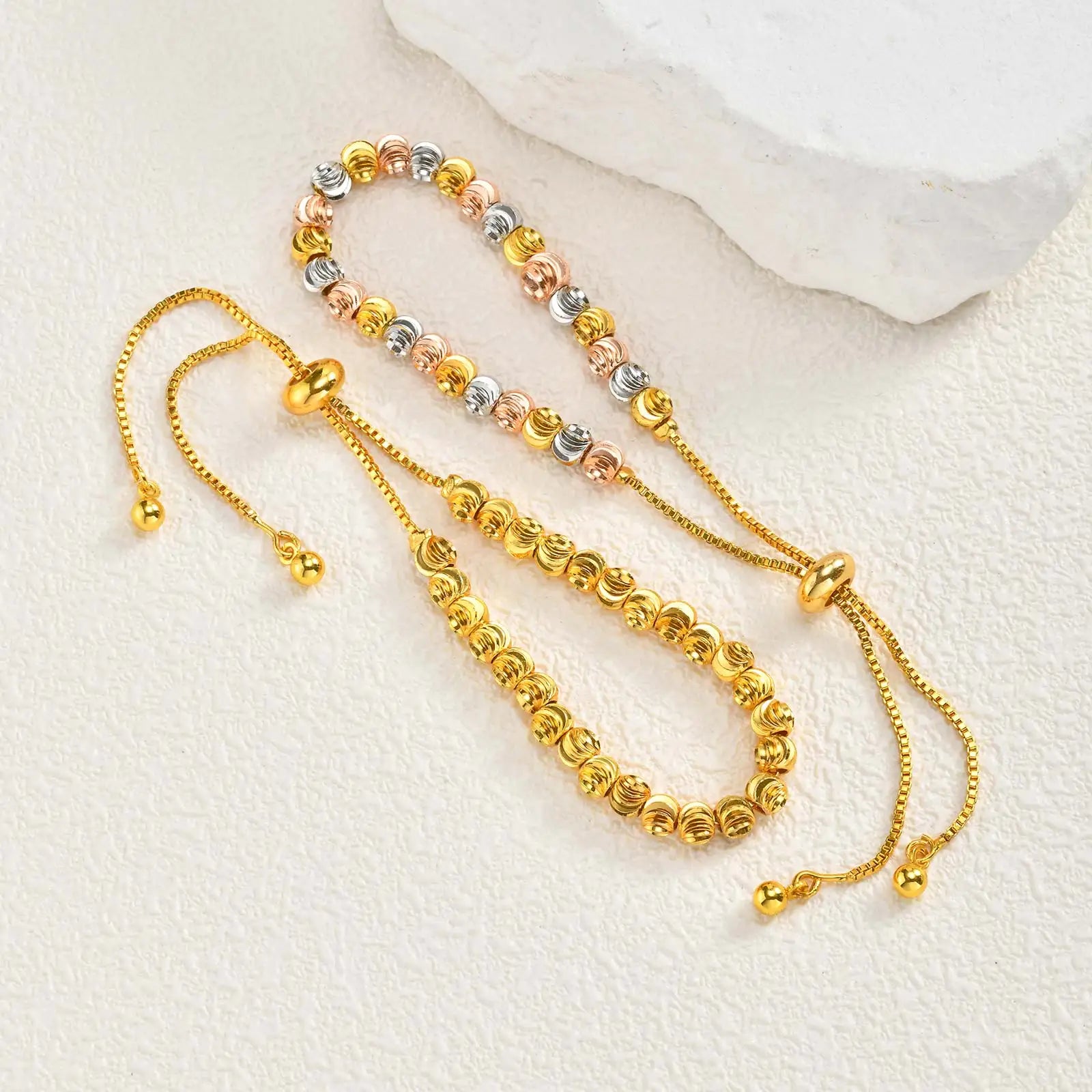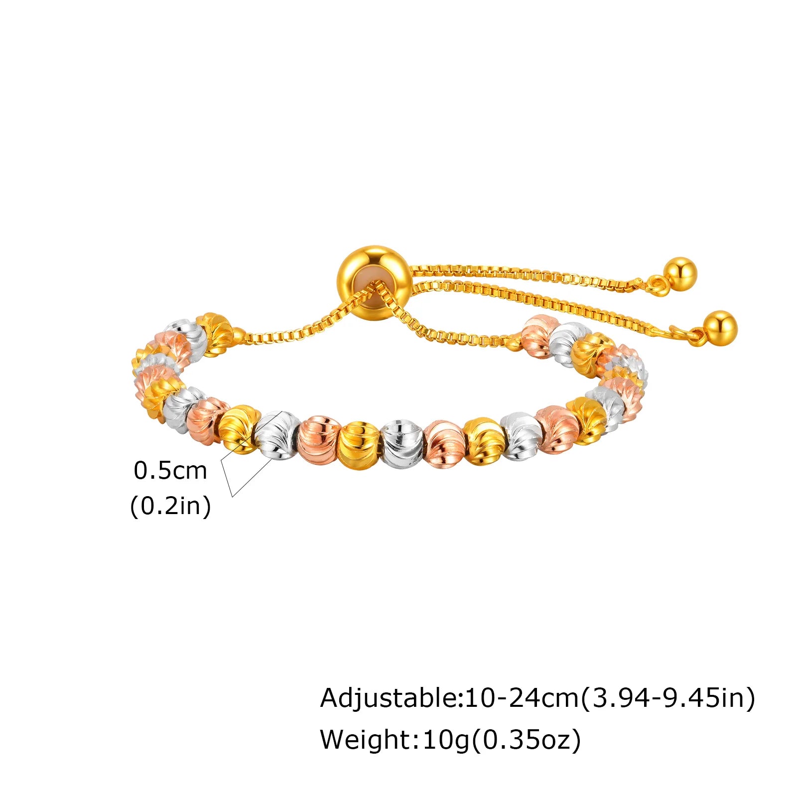 Luxury Tri Color Beaded Bracelet for Women, Gold Plated Adjustable Chain Bracelet, Unique Design Fashion Jewelry